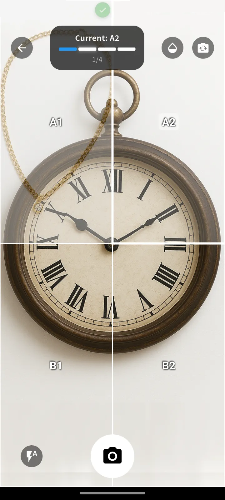 Shoot with various grid layouts from 2×2 to 3×3. Maximize your creativity.