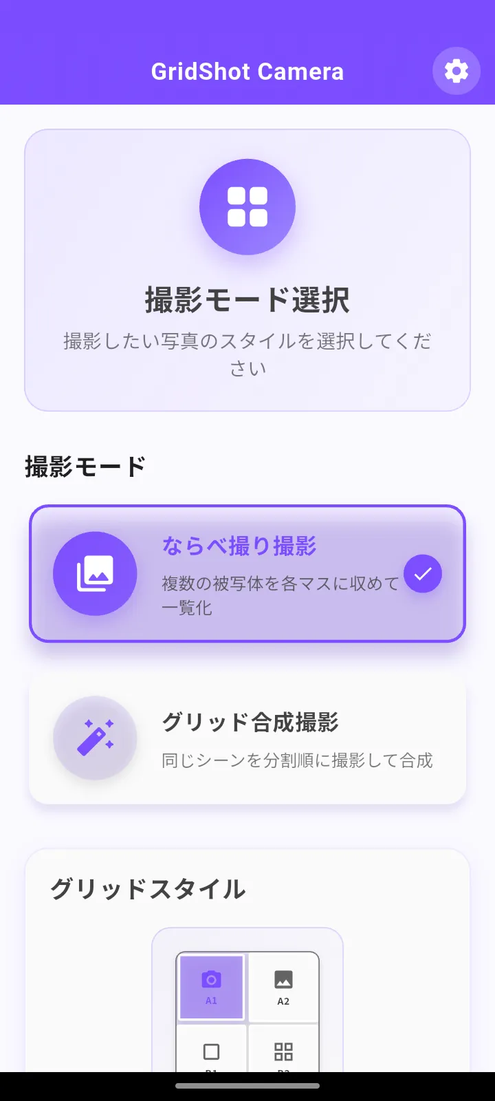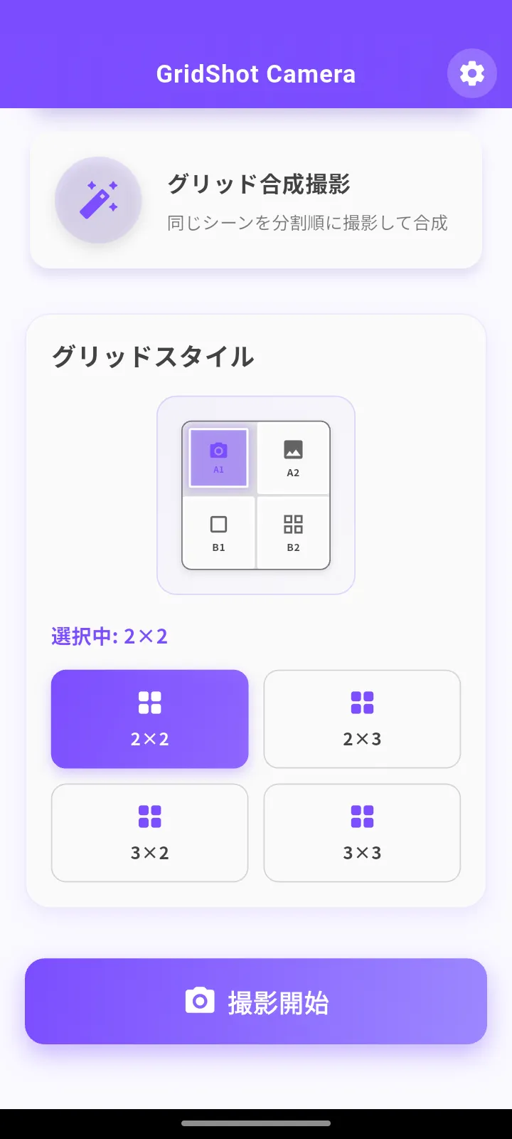 GridShot Cameraは、創造的な写真撮影を可能にする革新的なカメラアプリです。独自のグリッド機能により、複数の被写体を整理して撮影したり、同じシーンを分割撮影して驚きの合成写真を作成できます。