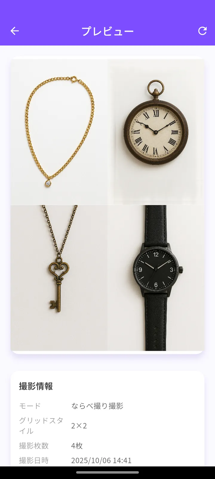 2×2から3×3まで、様々なグリッドレイアウトで撮影可能。あなたの創造性を最大限に引き出します。