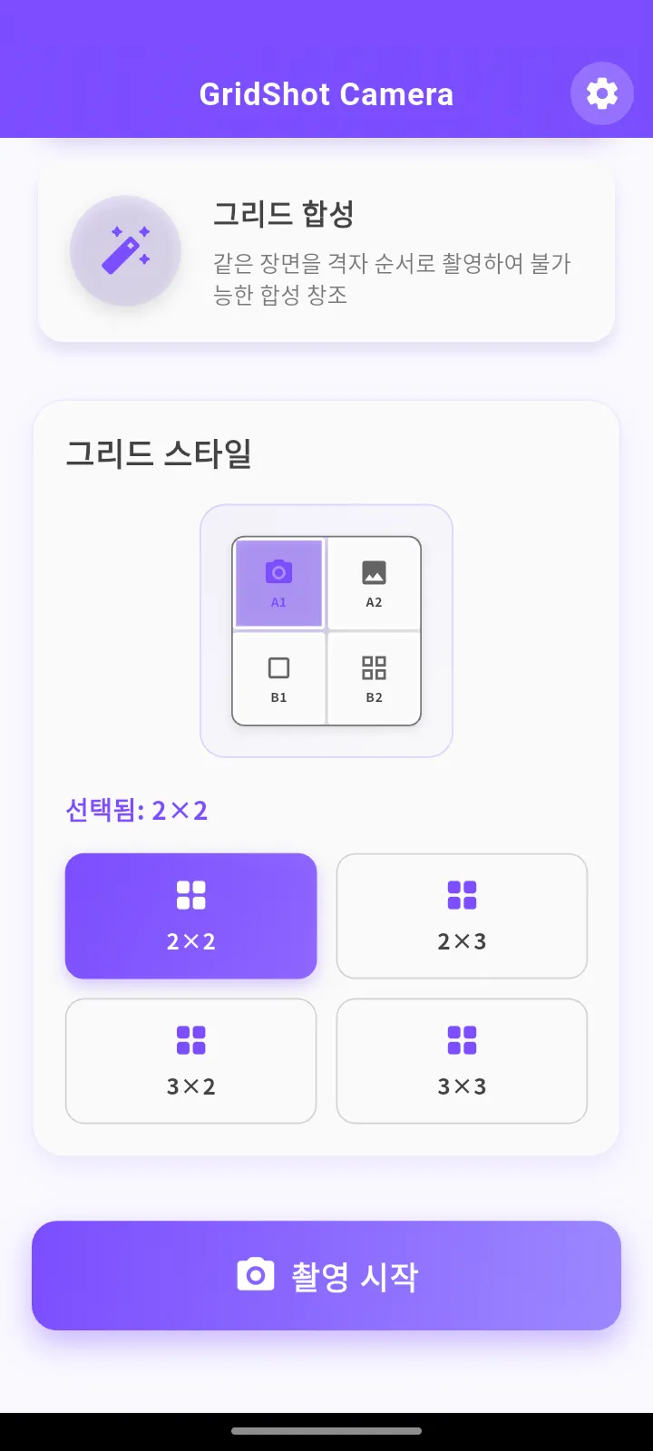 GridShot Camera는 창의적인 사진 촬영을 가능하게 하는 혁신적인 카메라 앱입니다. 독특한 그리드 기능으로 여러 피사체를 정리하여 촬영하거나 같은 장면을 분할 촬영하여 놀라운 합성 사진을 만들 수 있습니다.
